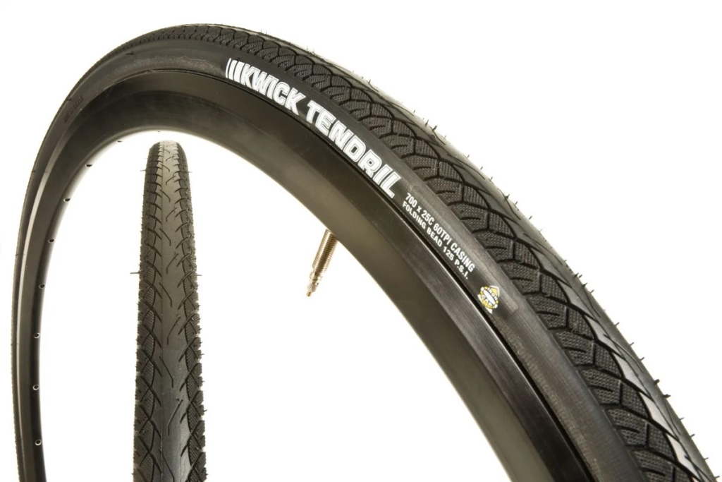 The Kenda Kwick Tendril is an affordable tire for city riding commuting. The STC rubber compound and smooth center tread offer a great combination speed and wear resistance. Iron Cap puncture protection helps keep out broken glass and thorns, and the folding bead keeps the weight down.