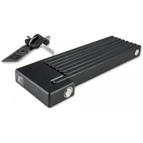 high-security disk cylinder; plastic covers protect the frame from scratches; ART1 Certification; specially hardened locking bolt; stainless high performance steel; ice spray tested; saw protection; wear-resistant; certified pollutant-free; holder with additional velcro fastening and two M5 screws; incl. three keys;
