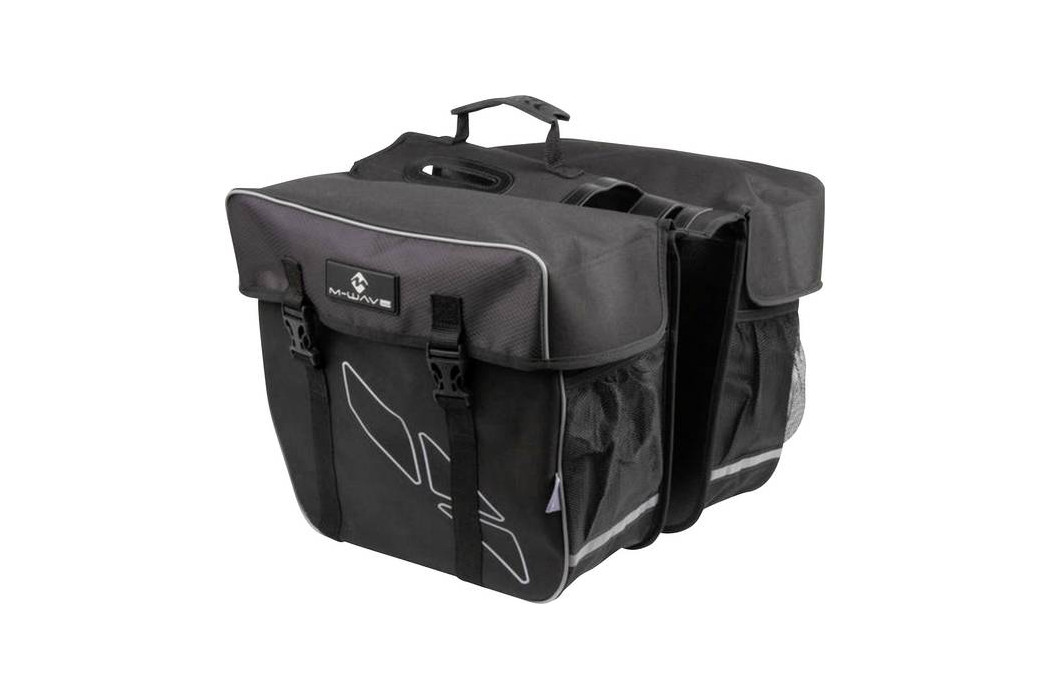 Διπλός σάκος για τοποθέτηση στην οπίσθια σχάρα του ποδηλάτου σας. Κατασκευασμένος από αδιάβροχο και ανθεκτικό υλικό με προκαθορισμένο σχήμα από αφρώδες υλικό. Πρακτικός εσωτερικός σχεδιασμός με χωρητικότητα 30 lt και ειδικό διαμέρισμα αποθήκευσης για την μεταφορά διαφόρων αξεσουάρ. Μια πολύ καλή επιλογή για τσάντα ποδηλάτου για τη σχάρα, αφού διαθέτει 2 μεγάλα σακίδια χωρητικότητας 30L Με ενισχυμένα τοιχώματα για προστασία του περιεχομένου και η λαβή ανάμεσα στα σακίδια είναι κατάλληλη για παντός τύπου μεταφορά. Τέλος διαθέτει διχτάκι στο πίσω μέρος της κάθε τσάντας και αντανακλαστικές λωρίδες για επιπλέον ασφάλεια.