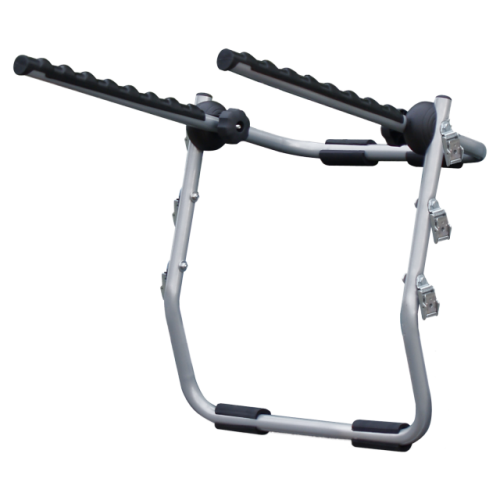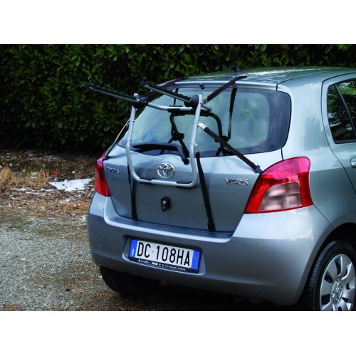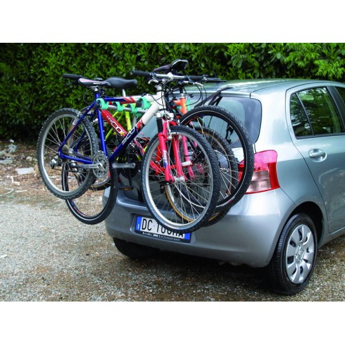 Rear mounted bike carrier BIKI, steel made, suitable for carrying max. three bikes, very simple mounting by means of adjustable straps.